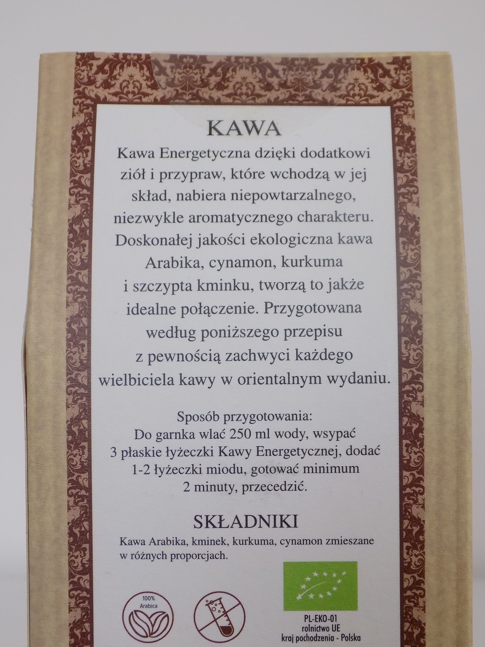 Kawa Arabica z dodatkiem energetycznych ziół, według receptury mgr Stefanii Korżawskiej (znanej propagatorki ziołolecznictwa). Zawiera kminek, kurkumę i cynamon, które nadają jej orientalnego charakteru.