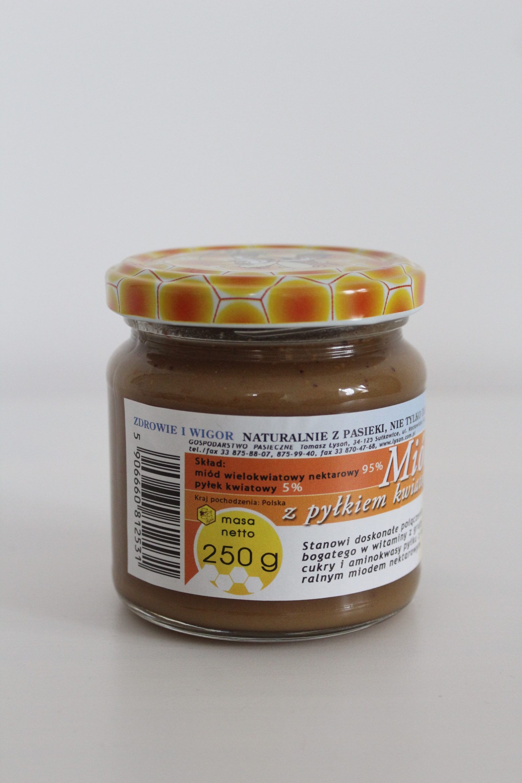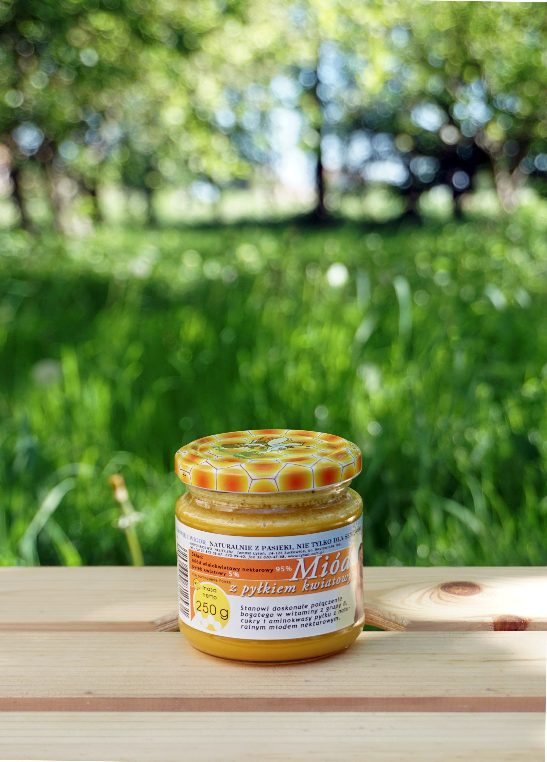 Skład: miód wielokwiatowy nektarowy 95%, pyłek kwiatowy 5%