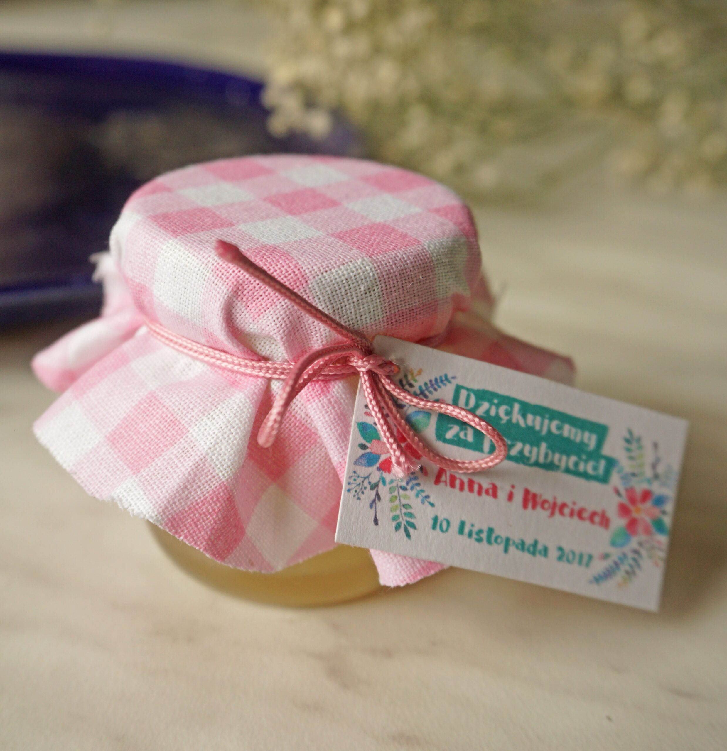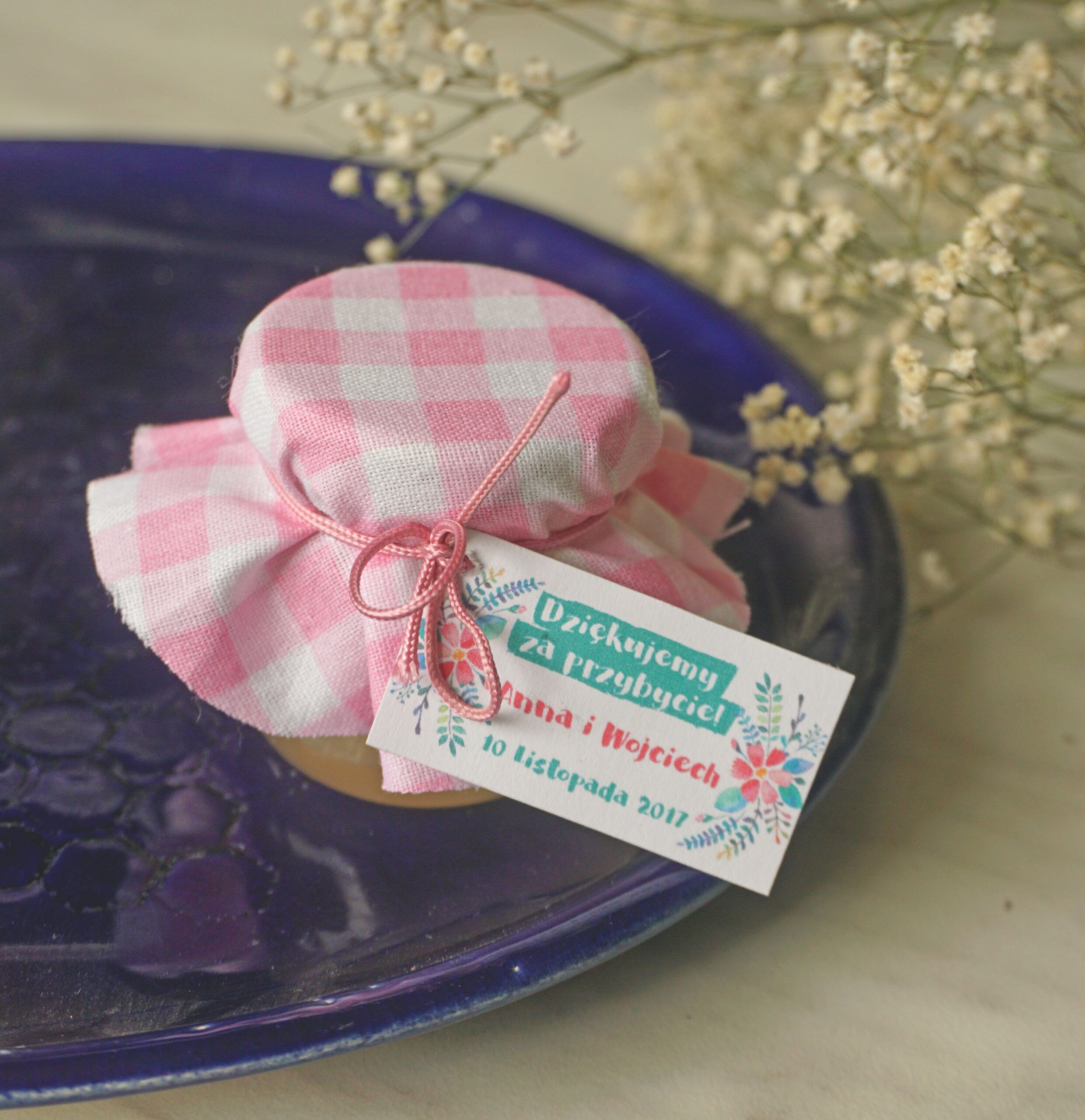 Niewielki elegancki słoiczek z naturalnym miodem to doskonały pomysł na prezent dla gości weselnych. Wasi bliscy z pewnością będą takimi pysznymi podarkami zachwyceni!