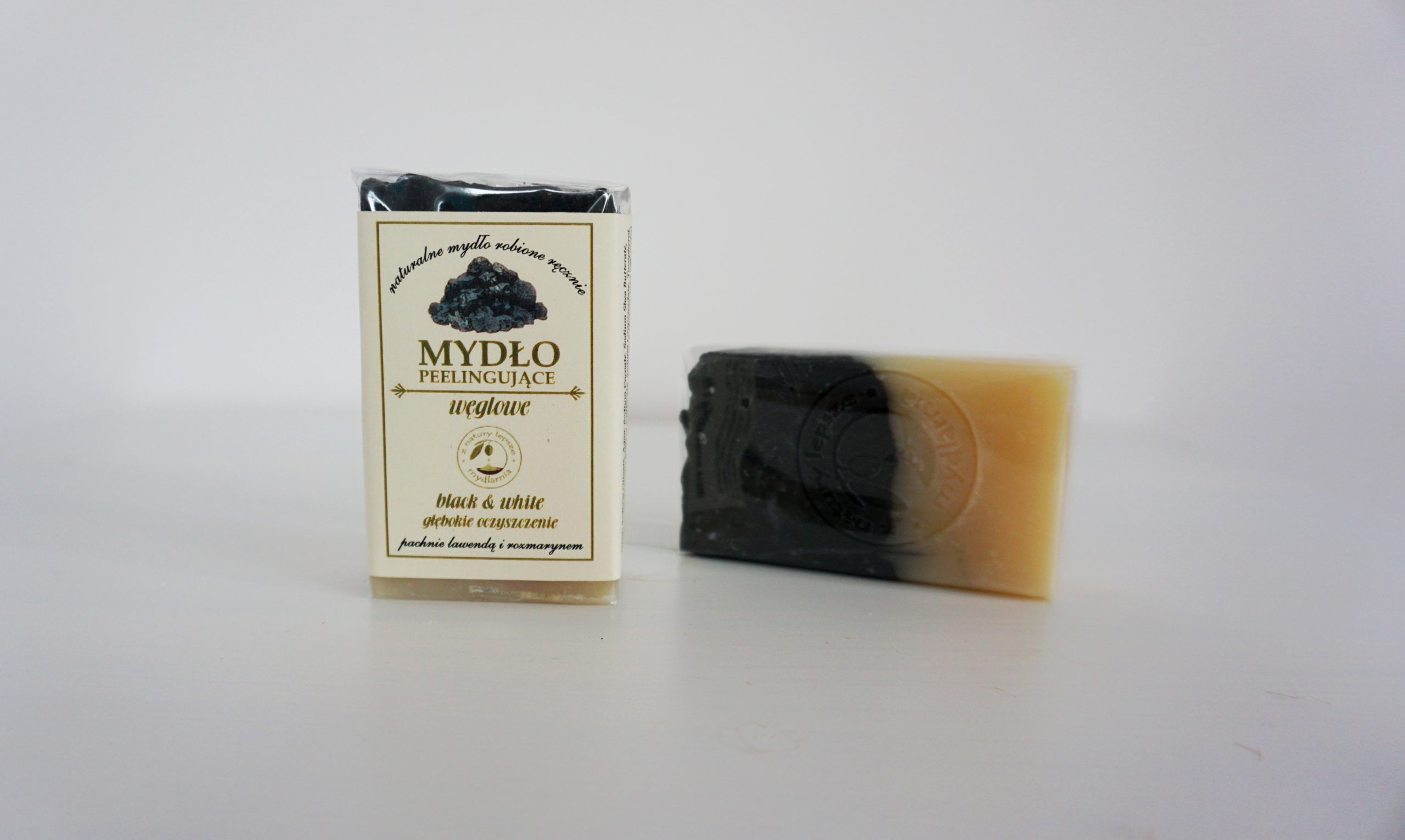 Czarno-białe mydło do zadań specjalnych od manufaktury kosmetyków naturalnych z Żywicczyzny-Karitee, urzeka nie tylko wyglądem, ale także tym co potrafi. Likwiduje przebarwienia i niedoskonałości skórne, walczy z trądzikiem i zaskórnikami, pochłania zanieczyszczenia i toksyny, a przede wszystkim usuwa brud. Obecny w kosmetyku węgiel aktywny oczyszcza skórę i usuwa nadmiar sebum, posiada silne właściwości absorbujące. Jest to naturalny surowiec wykazujący właściwości antybakteryjne i przeciwzapalne, a także rozjaśniające. Punkt bazowy kostki myjącej stanowią drogocenne oleje i masła, które pielęgnują i odżywiają skórę, aby była piękna.