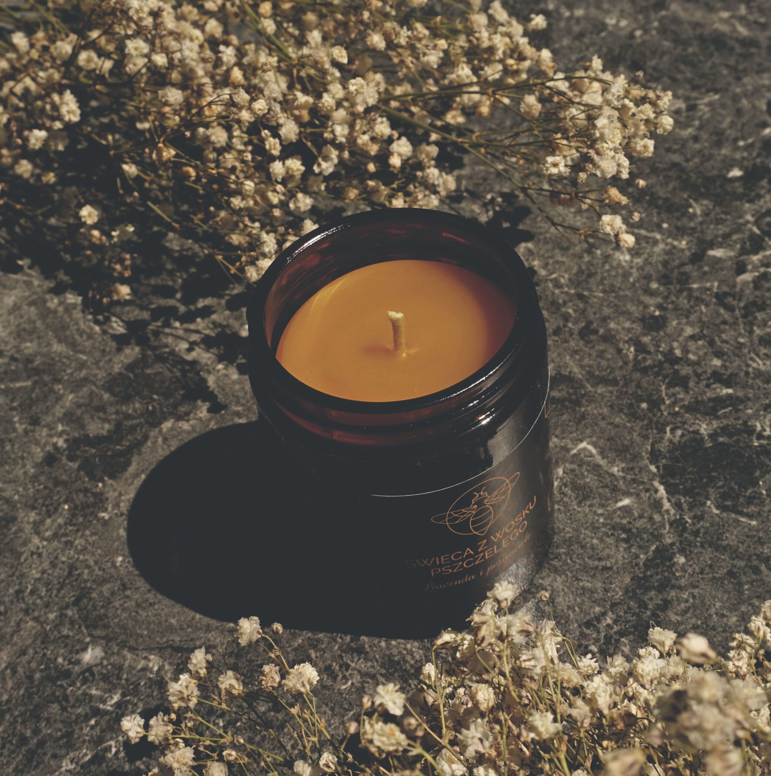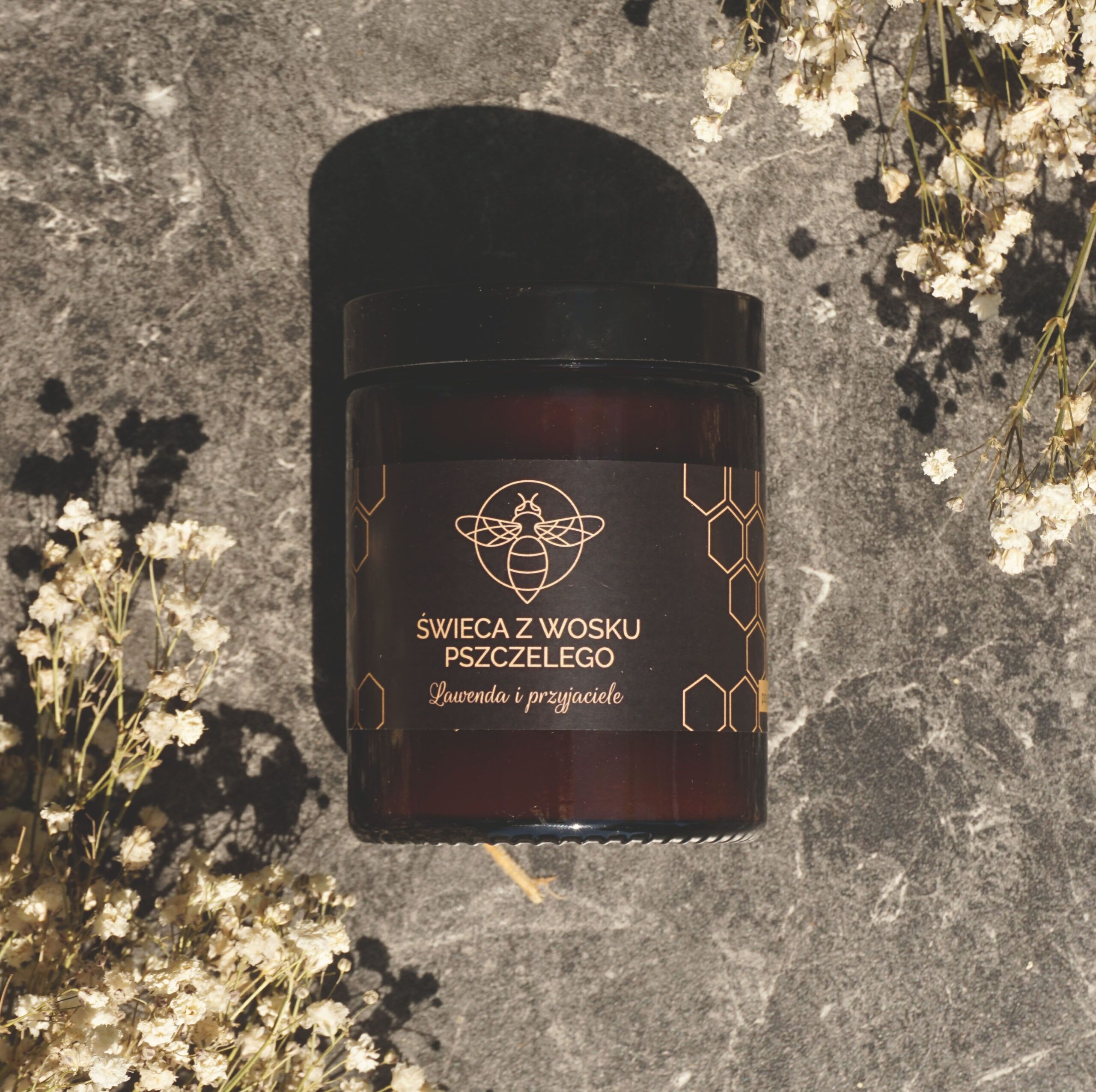 Świeca wykonana z wosku pszczelego z dodatkiem naturalnych olejków eterycznych. Stworzyliśmy kompozycję zapachu lawendy, cedru,grejpfruta i mandarynki, która podczas palenia świecy łączy się z miodowym zapachem wosku pszczelego.