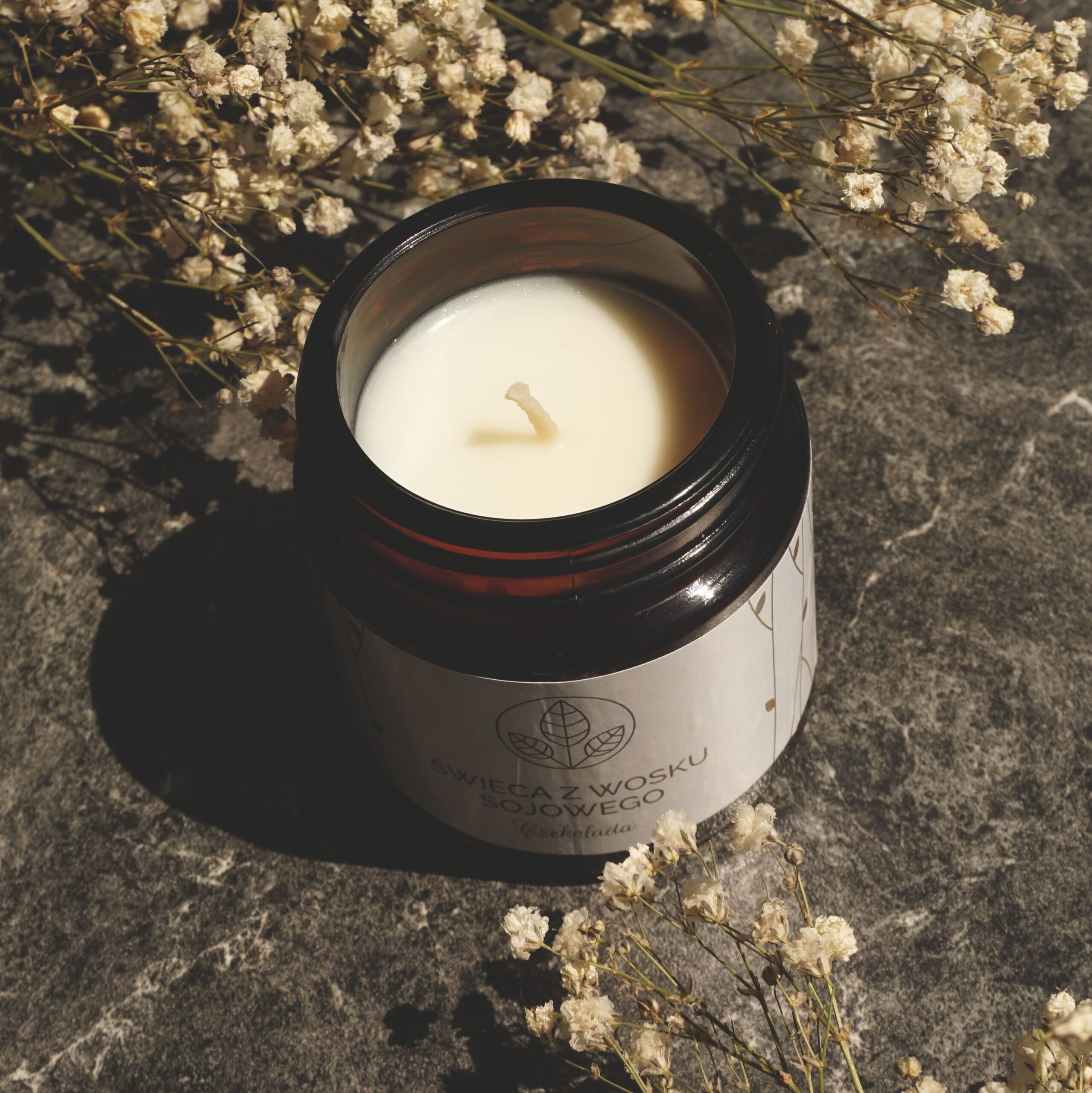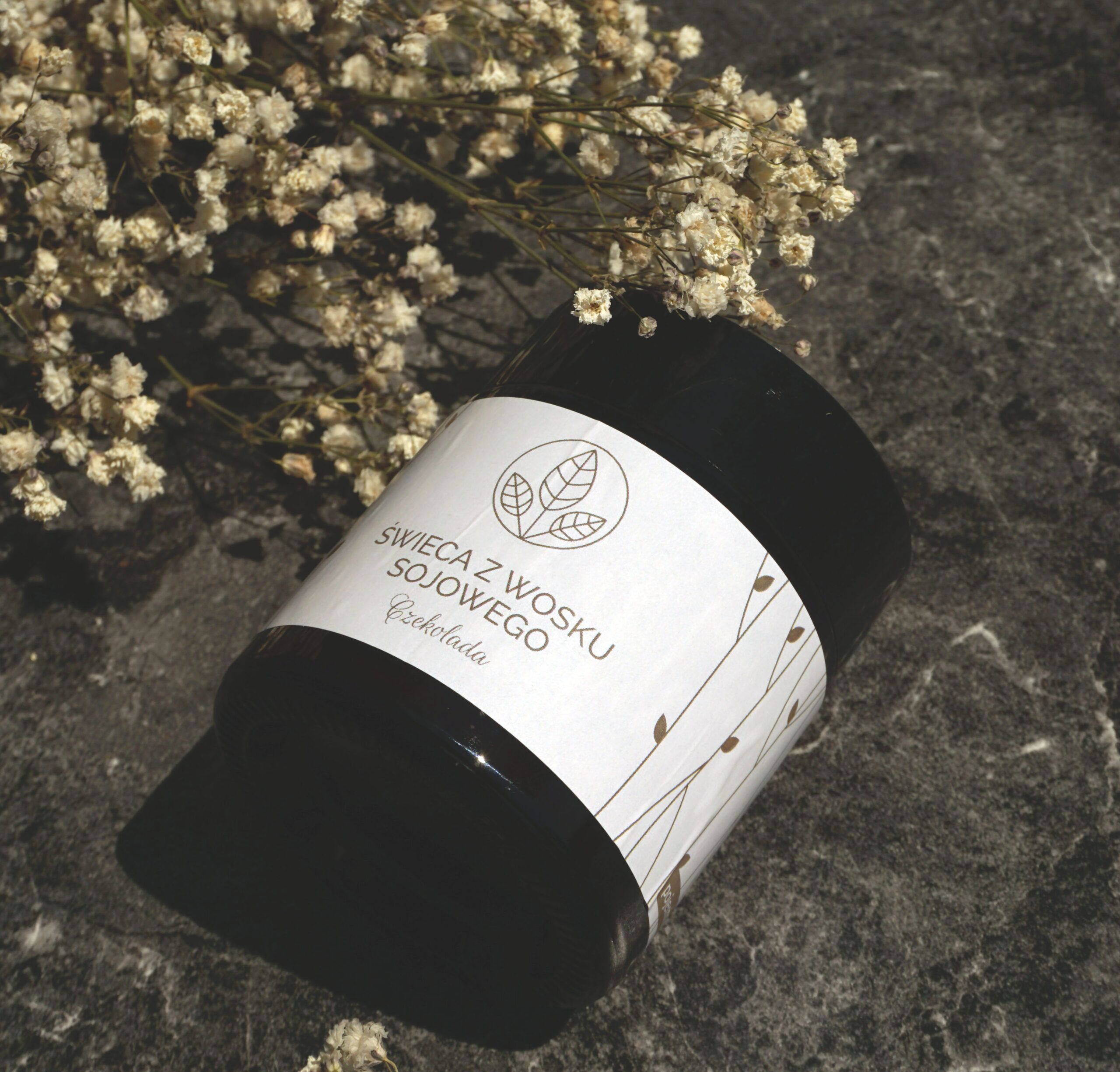Świeca z wosku sojowego o zapachu czekolady. Wykonana ręcznie w naszej pracowni z dodatkiem olejku zapachowego przeznaczonego do użycia w świecach z wosków naturalnych. Do odlania świecy wykorzystujemy knot bawełniany powleczony przez nas woskiem sojowym i okuty w blaszkę.
