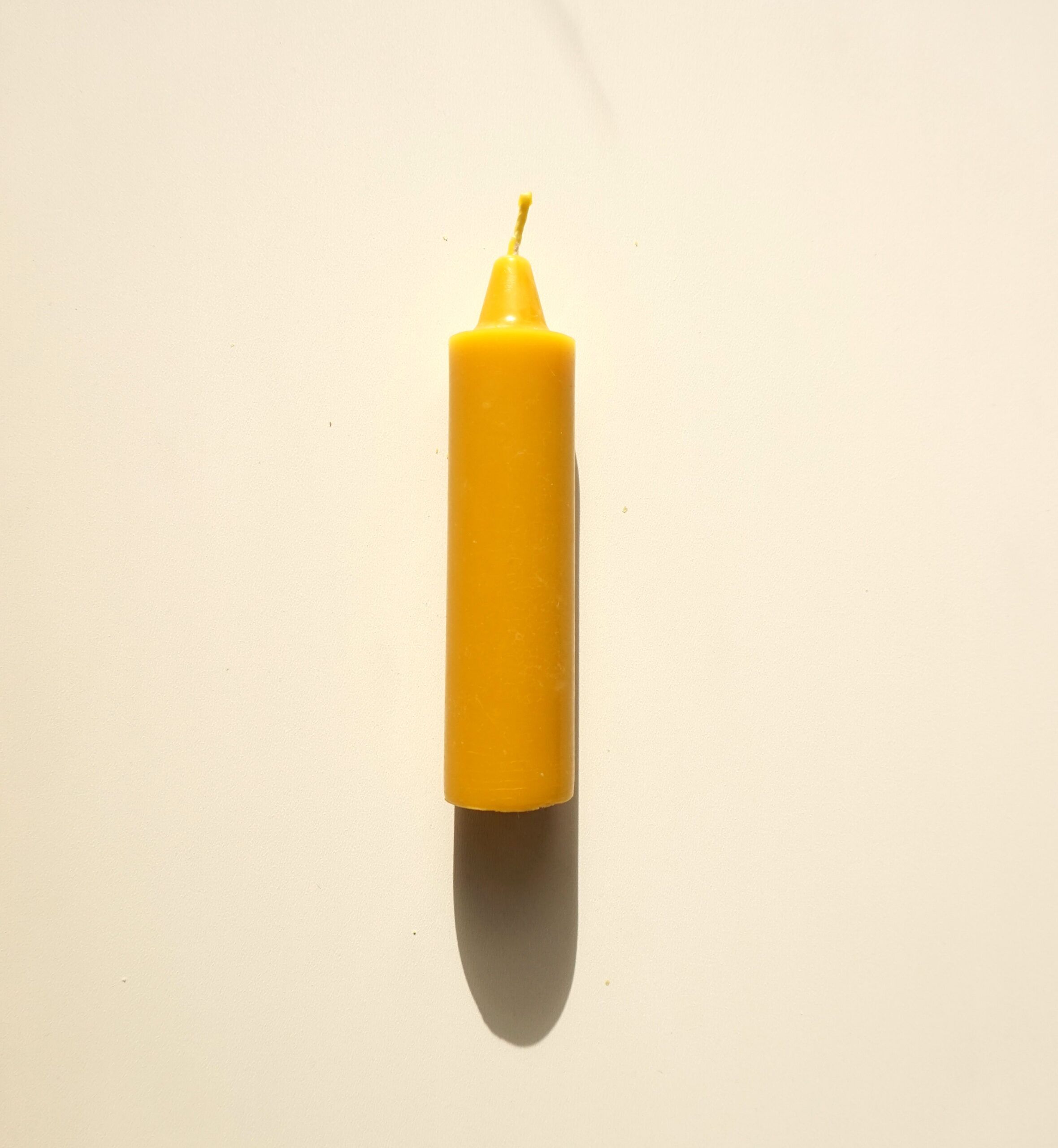 Niewielka świeczka z wosku pszczelego z naszej pracowni. Odlana z wosku pszczelego z polskiej pasieki z bawełnianym knotem.