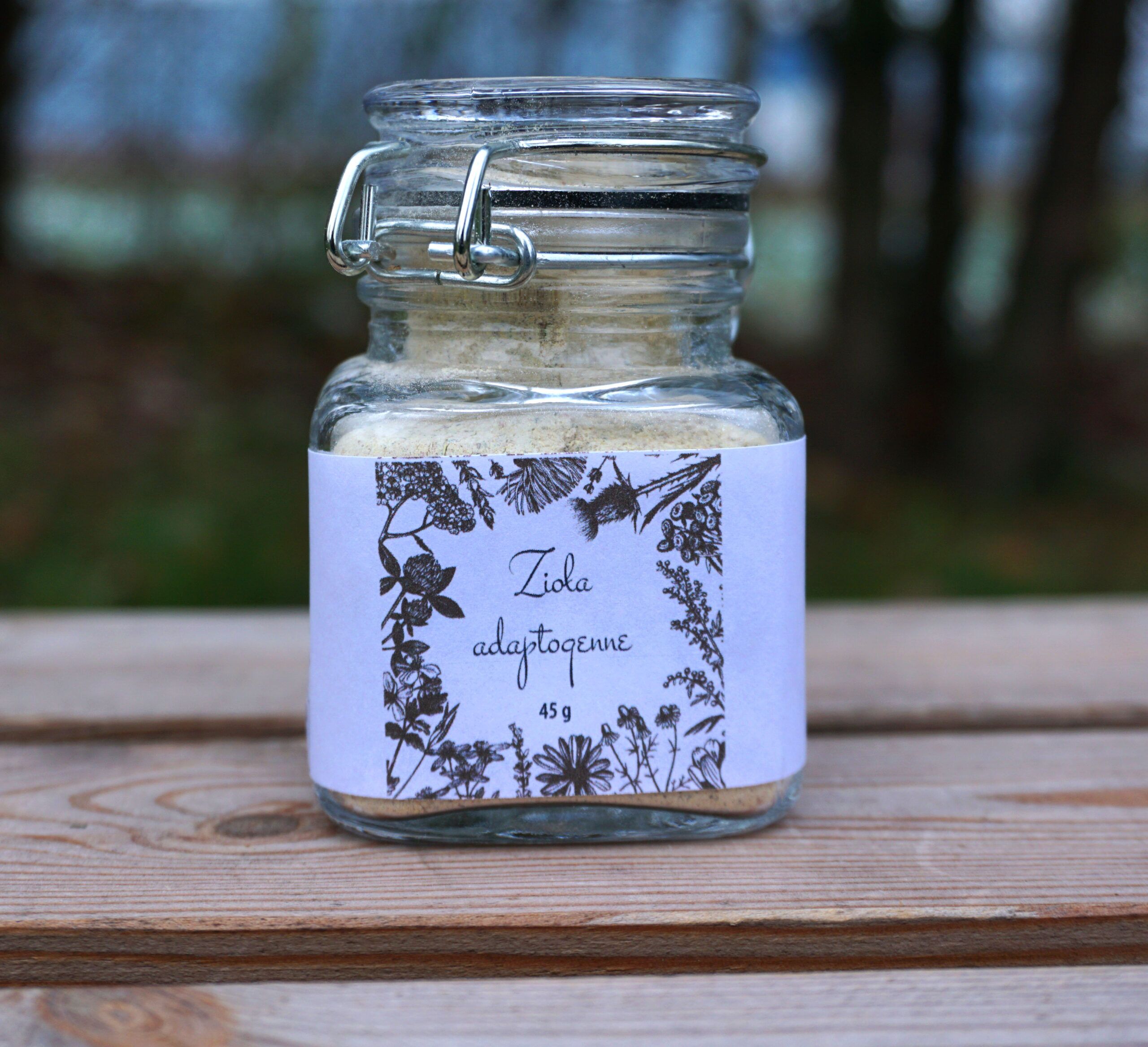 Receptura skomponowana jest z ziół adaptogennych zmikronizowanych, które podnoszą odporność organizmu na stres i niwelują jego skutki. Ich zadaniem jest przywrócenie naturalnej równowagi psychofizycznej. W składzie znajdują się ashwagandha, różeniec górski i liść melisy. Mieszanka ziołowa pozytywnie wpływa na układ nerwowy i odpornościowy, jak również na nadnercza.